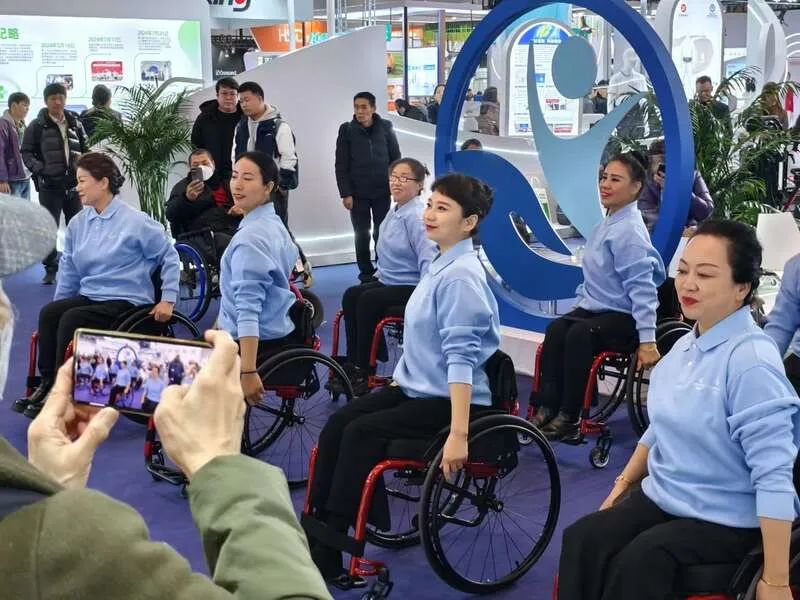 11月28日,2024中國國際福祉博覽會暨中國國際康復(fù)博覽會,北京心之源輪椅舞蹈隊正在表演。劉胤衡/攝