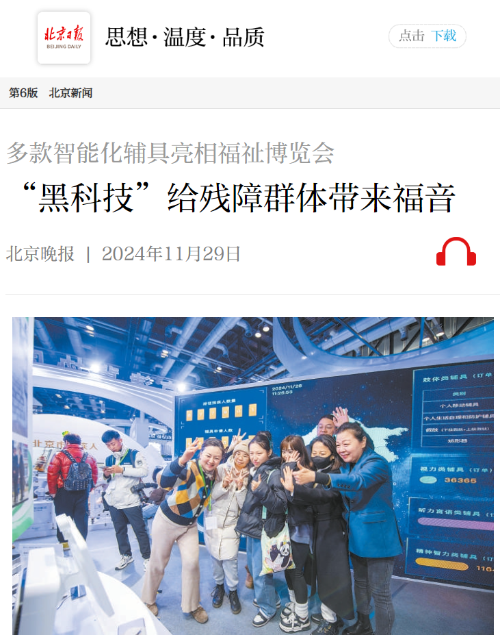 本報訊(記者任珊)11月28日,由中國殘聯(lián)主辦,中國殘疾人輔助器具中心、北京市殘聯(lián)承辦的2024年中國國際福祉博覽會開幕。今年,京津冀殘聯(lián)首次聯(lián)合集中展示三地近年來在輔具服務(wù)和無障礙環(huán)境建設(shè)方面的創(chuàng)新成果。其中,北京市殘聯(lián)攜20余類助行、助視、助聽類智能化輔助器具產(chǎn)品亮相。