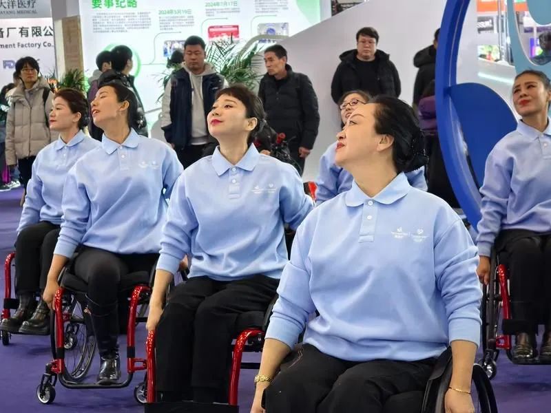 11月29日,2024中國國際福祉博覽會暨中國國際康復(fù)博覽會上,北京心之源輪椅舞蹈隊正在表演。劉胤衡/攝