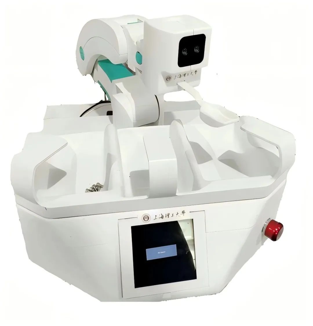 攜惠護理轉(zhuǎn)移機器人,座椅與目標智能適配、無縫對接,實現(xiàn)輕松自主轉(zhuǎn)移。上海理工大學(xué)智能助餐機器人,提出剛?cè)狁詈系臋C械結(jié)構(gòu)結(jié)合智能控制策略,實現(xiàn)機械臂的柔性交互,解決失能患者無法獨立進食的問題,減輕康養(yǎng)機構(gòu)、醫(yī)院、家庭環(huán)境下的照護壓力。