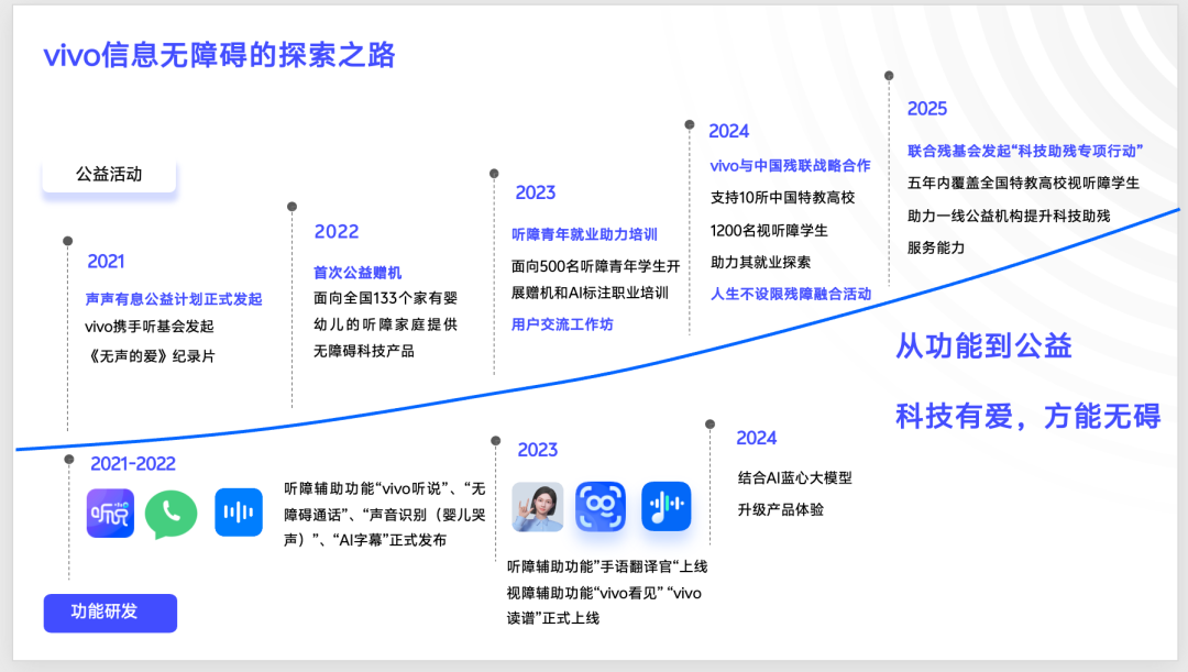 2025年5月,vivo聯(lián)合中國(guó)殘疾人福利基金會(huì)正式啟動(dòng)“聲聲有息科技助殘專(zhuān)項(xiàng)行動(dòng)”,宣布未來(lái)五年投入3000萬(wàn)元專(zhuān)項(xiàng)資金,持續(xù)探索技術(shù)賦能無(wú)障礙生活的創(chuàng)新路徑,攜手一線機(jī)構(gòu)推動(dòng)科技成果轉(zhuǎn)化為實(shí)際場(chǎng)景應(yīng)用,跨越科技助殘“最后一公里”。同年,vivo與中國(guó)聾人協(xié)會(huì)達(dá)成深度合作,依托協(xié)會(huì)專(zhuān)家資源優(yōu)化公益項(xiàng)目與產(chǎn)品無(wú)障礙設(shè)計(jì),并計(jì)劃開(kāi)展無(wú)障礙功能全國(guó)推廣及粵港澳大灣區(qū)攝影采風(fēng)等活動(dòng),進(jìn)一步拓展公益實(shí)踐的廣度與深度。