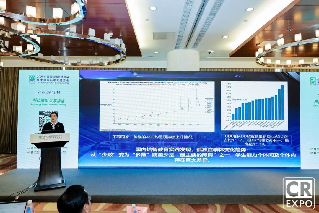 南京特殊教育師范學院特聘教授徐云作《中國孤獨癥兒童教育的現(xiàn)狀與展望》報告。他指出,自1982年我國學者首次報道以來,孤獨癥日益受到國家重視近年來,國家連續(xù)出臺各種專項政策,建立康復(fù)救助制度、實施特殊教育提升計劃、推出關(guān)愛行動方案等跨部門全生命周期的支持計劃;推動融合教育成為主流,“應(yīng)隨就隨”,學前教育倡導免費,義務(wù)教育提高生均經(jīng)費,強化育人為本,義務(wù)教育入學率超過97%;職業(yè)教育以提升融入社會為導向,不但切實解決就業(yè)難,還與新技術(shù)、新平臺有機融合,努力培養(yǎng)成為“時代新人”,不少地方因地制宜,就業(yè)率實現(xiàn)或接近100%;國家孤獨癥兒童特殊教育資源中心設(shè)立、孤獨癥兒童教育專業(yè)獲批、家長賦能培訓、全社會支持與社會認同快速提升,教育模式正從“救助型”向“發(fā)展型”轉(zhuǎn)型。通過早篩干預(yù)、融合教育、社會融合銜接以及AI、VR等數(shù)智技術(shù)應(yīng)用,著力破解“早篩難、入學難、就業(yè)難”三大痛點。新時代新征程上,在師資培養(yǎng)、資源均衡與社會包容等方面還需要通過合作共享予以突破。