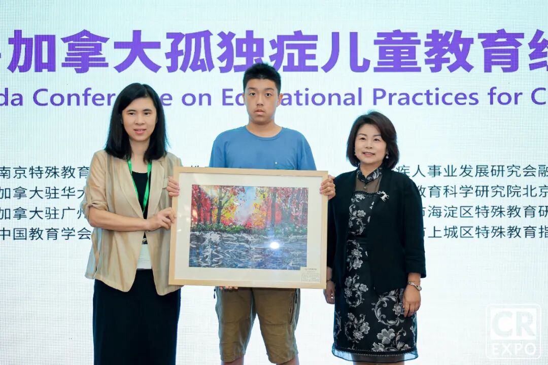來自北京市健翔學校的“星星的孩子”送給加拿大駐華大使館一幅自己的畫作,代表中國兒童,希望加拿大朋友多來中國交流,促進互相了解,中加友誼天長地久。