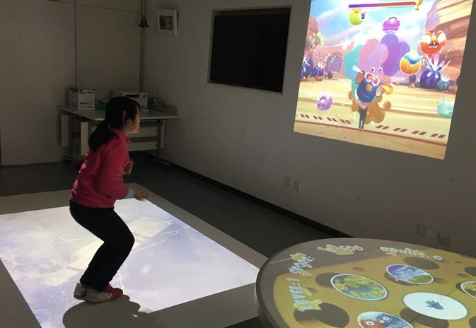 ? 當(dāng)參與者踏入投影投射的影響時,可以直接使用雙腳或者雙手及身體的各個部位與虛擬場景進行交互,產(chǎn)生各種互動效果,從而達到感統(tǒng)訓(xùn)練的效果。