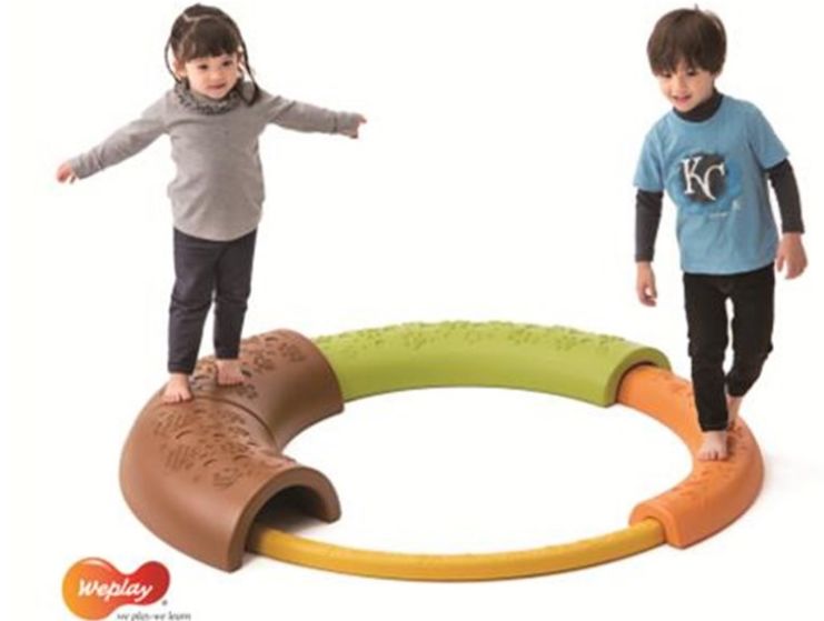 ? 四種不同寬窄、高度的步道,相互嵌合即能伸縮改變路徑長短,滿足各年齡平衡游戲的需求。