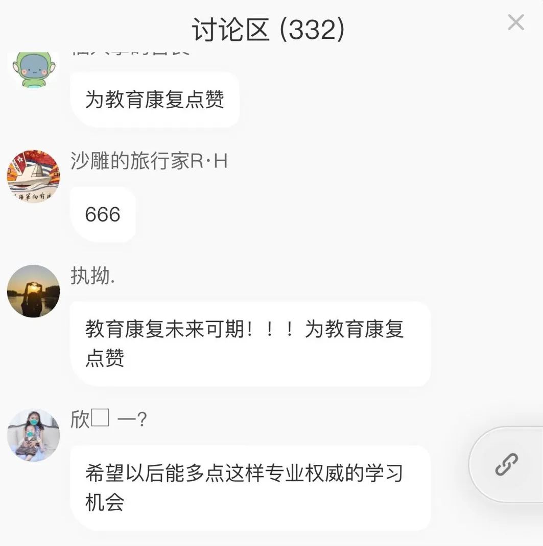 圍繞“康教結(jié)合,共促特殊兒童健康發(fā)展”這一主題,來(lái)自醫(yī)院、特教學(xué)校、特教管理部門(mén)和高校的四位嘉賓異地連線直播,超過(guò)5000人次同時(shí)觀看討論,可謂人氣爆棚,精彩不斷。