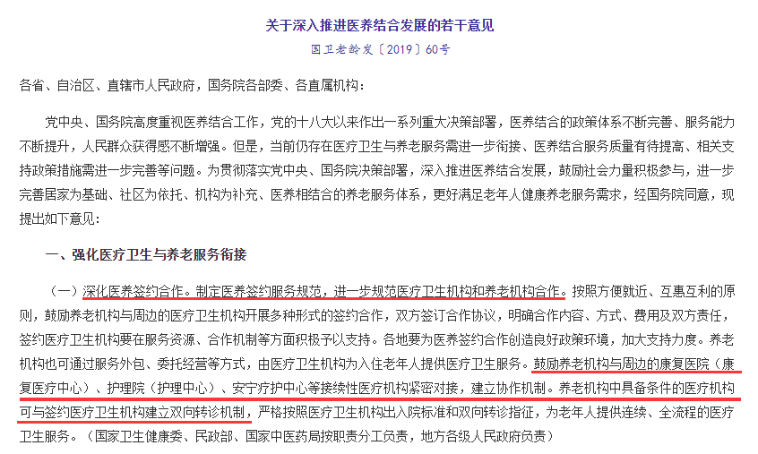 《關(guān)于深入推進(jìn)醫(yī)養(yǎng)結(jié)合發(fā)展的若干意見》