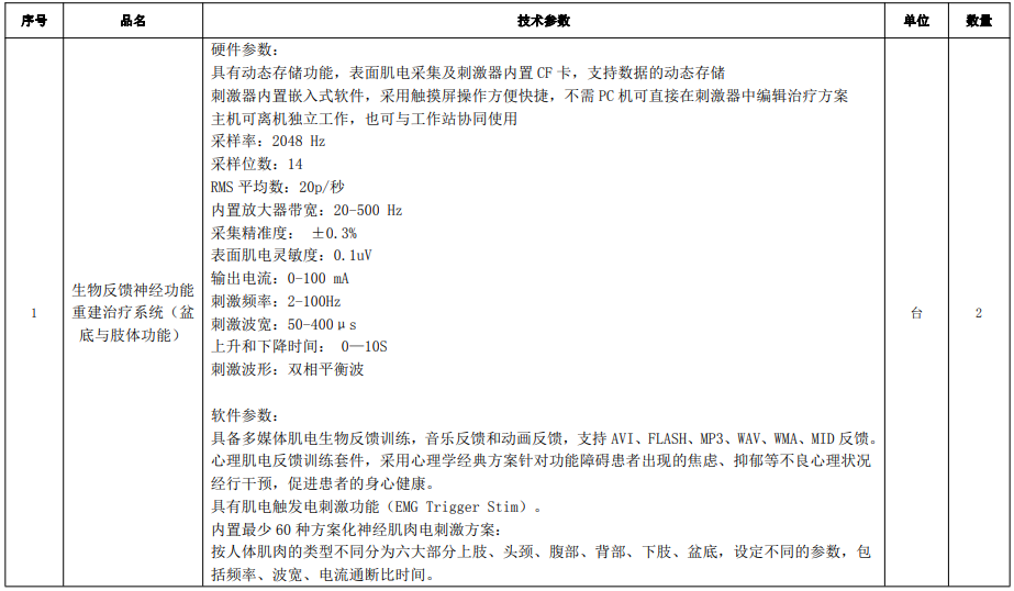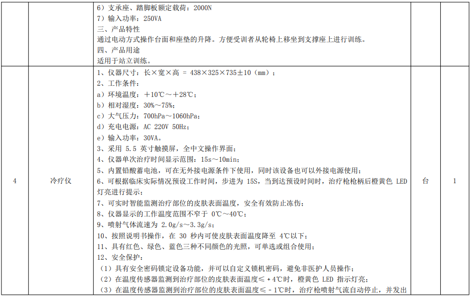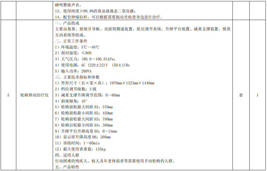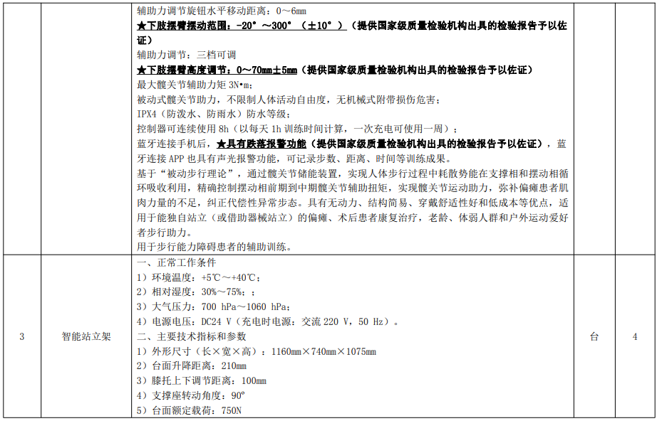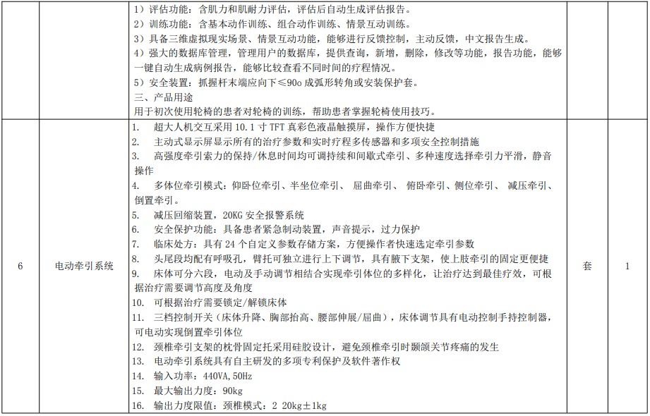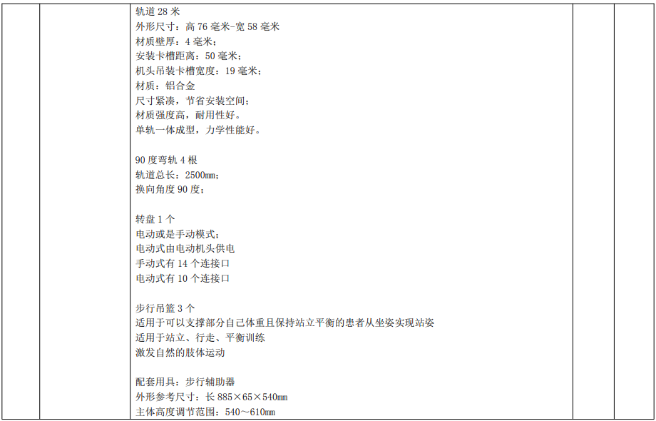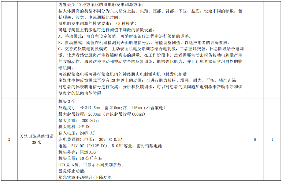 康復(fù)訓(xùn)練設(shè)備主要功能配置及技術(shù)指標(biāo)