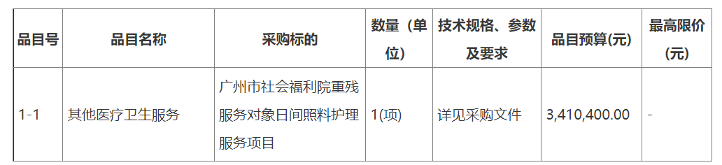 項目名稱:廣州市社會福利院重殘服務(wù)對象日間照料護理服務(wù)項目