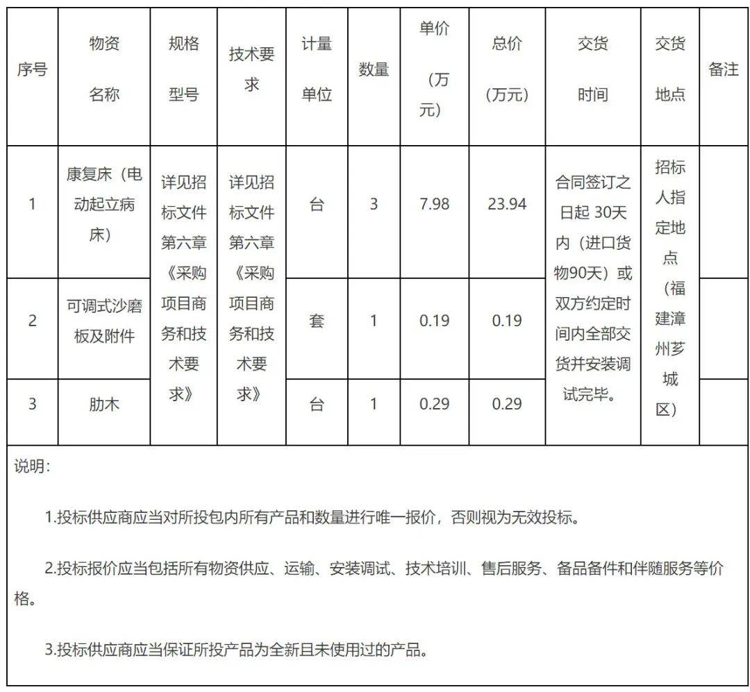 漳州某單位康復床及康復輔助器具采購招標公告(2024-JQ16-W1051)