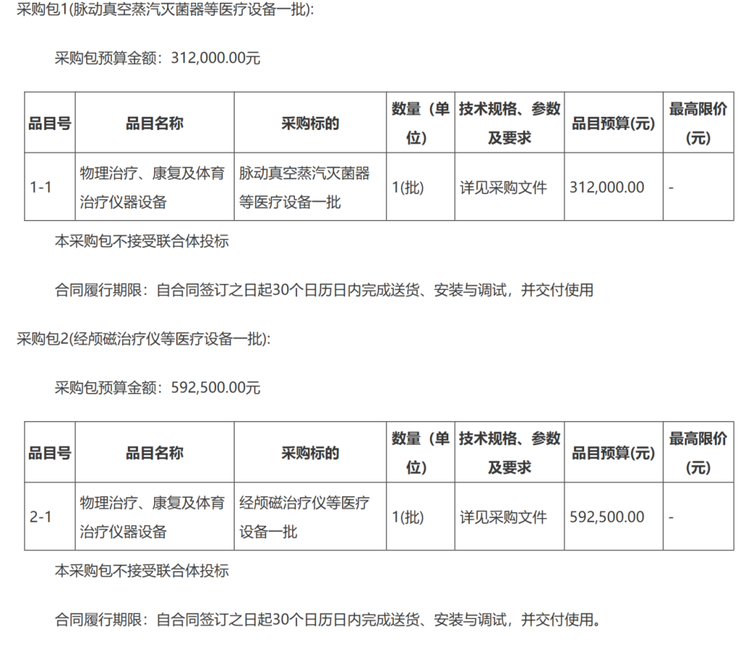 A包:康復科設備采購,B包:心血管科、兒科設備采購