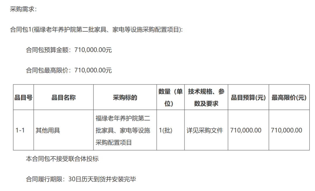 富平縣民政局(本級)福緣老年養(yǎng)護院第二批家具、家電等設施采購配置項目招標公告