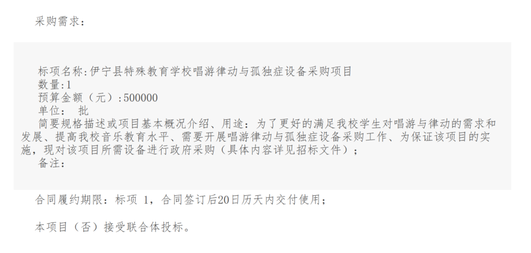 伊寧縣特殊教育學校唱游律動與孤獨癥設備采購項目公開招標公告