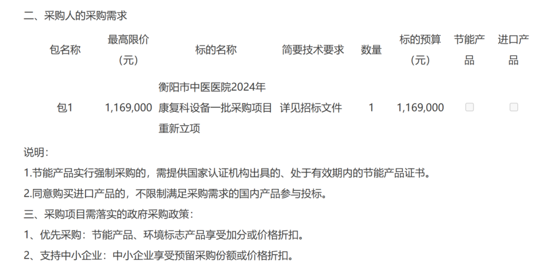 衡陽市中醫(yī)院衡陽市中醫(yī)醫(yī)院2024年康復科設備一批采購項目重新立項項目公開招標公告