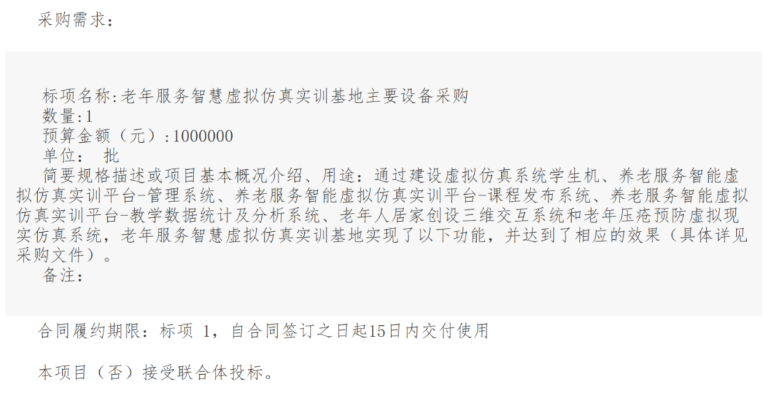 老年服務智慧虛擬仿真實訓基地主要設備采購公開招標公告