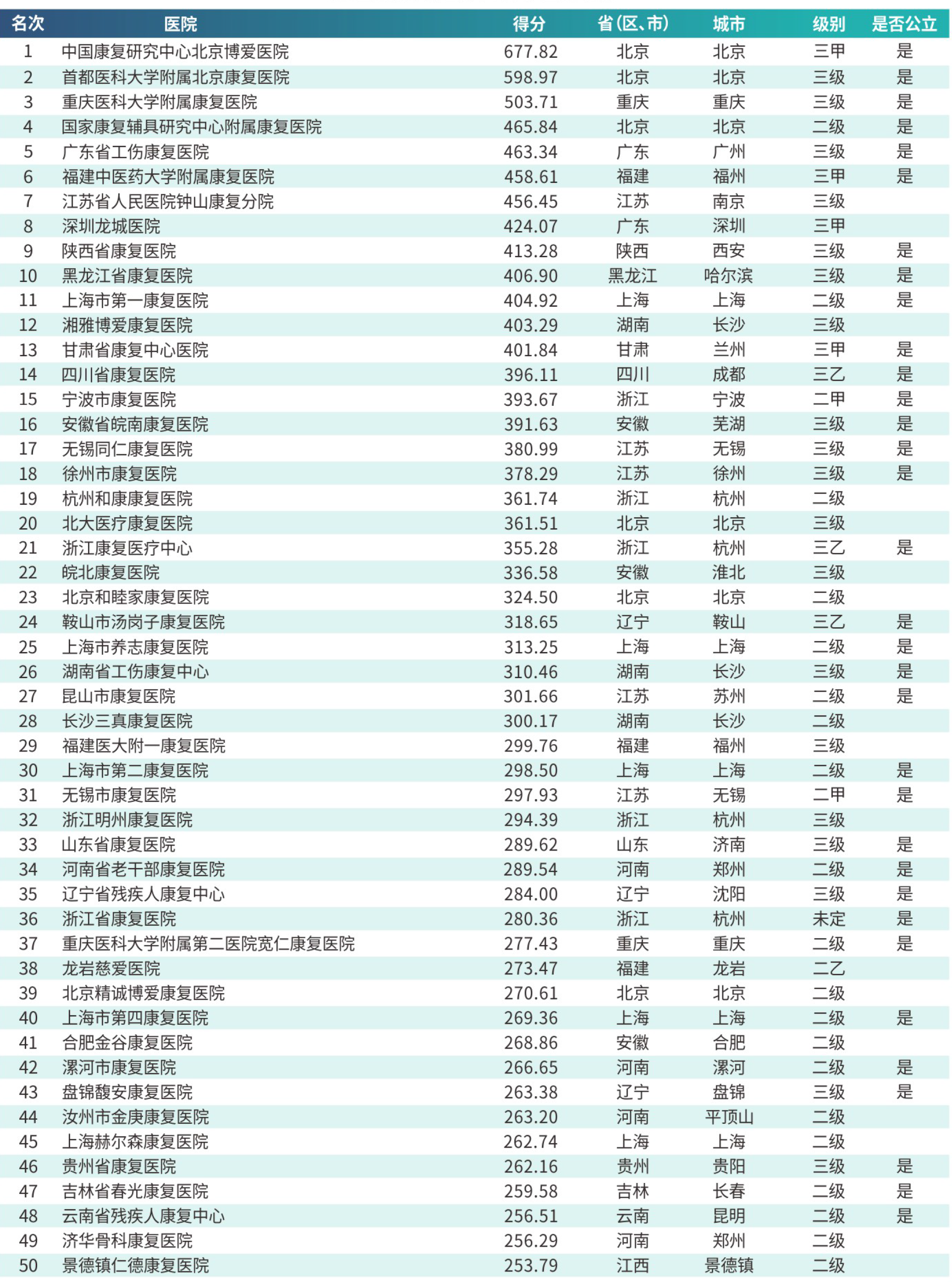 近年來,為應對老齡化、慢病高發(fā)的態(tài)勢,我國制定和推出有關政策,鼓勵社會辦醫(yī)、推動醫(yī)養(yǎng)結合和康復醫(yī)療的發(fā)展。日前,《中國醫(yī)院競爭力報告(2019~2020)》發(fā)布,其中包括2019康復醫(yī)院50強和醫(yī)養(yǎng)結合機構100強。一起來看看都有哪些醫(yī)院和機構上榜了: