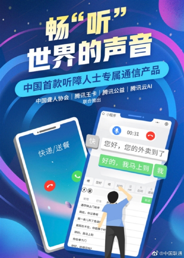 日前,中國聯通攜手騰訊和中國聾人協會聯合推出了“暢聽王卡”,針對聽障人士的手機通信困難,提供“無障礙AI通話服務”。