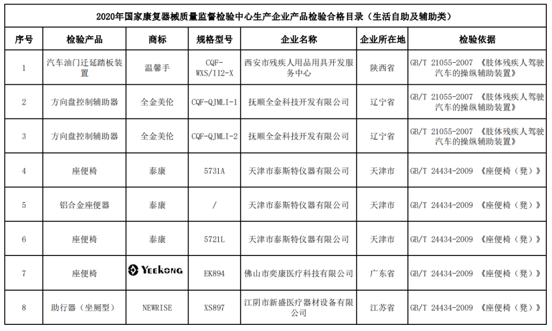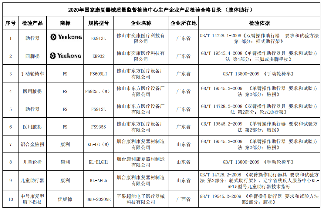 日前,中國殘疾人輔助器具中心公布了《國家康復(fù)器械質(zhì)量監(jiān)督檢驗(yàn)中心 2020年生產(chǎn)企業(yè)產(chǎn)品檢驗(yàn)合格目錄》,目錄包含假肢、肢體助行、聽力、視力、康復(fù)訓(xùn)練器械、生活自助及輔助類共6類產(chǎn)品。