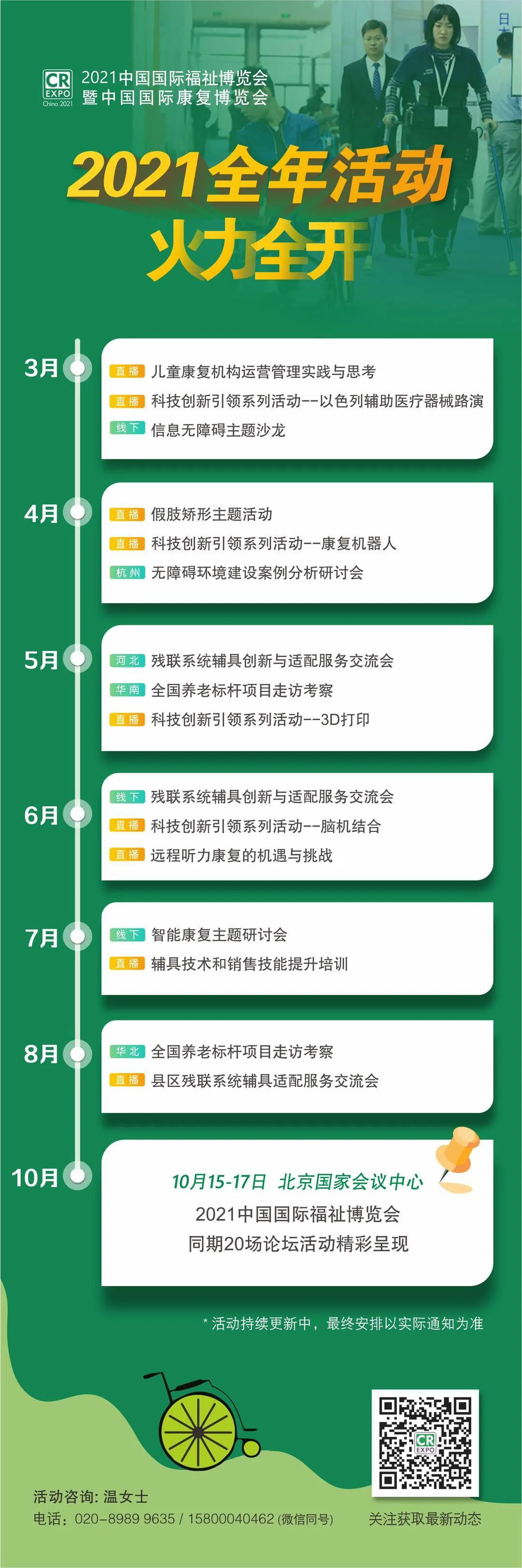 緊貼政策導(dǎo)向,融合行業(yè)資源,CR EXPO 2021重磅推出“全年活動計(jì)劃”:“屏對屏”交流,發(fā)現(xiàn)輔具新應(yīng)用、新技術(shù)、新機(jī)遇;“面對面”商談,走訪標(biāo)桿項(xiàng)目,探討行業(yè)熱點(diǎn)……