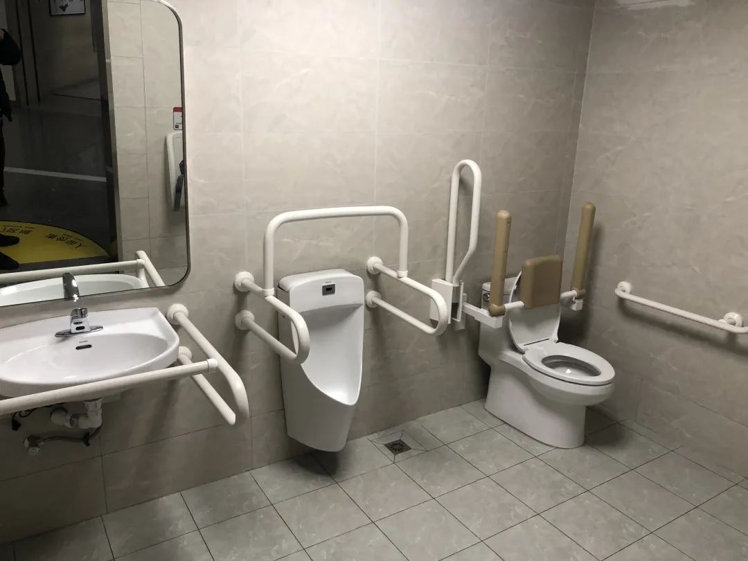 無(wú)障礙衛(wèi)生間里,扶手及緊急呼叫裝置一應(yīng)俱全,為行動(dòng)不便人士提供了安全順暢的如廁空間。