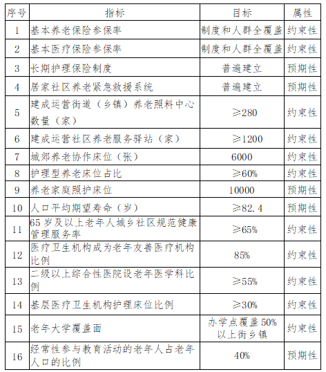 “十四五”期間老齡事業(yè)發(fā)展重點指標(biāo)