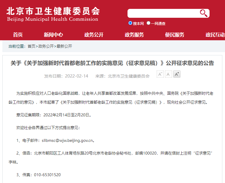 為實(shí)施積極應(yīng)對(duì)人口老齡化國(guó)家戰(zhàn)略,讓老年人共享首都改革發(fā)展成果,北京市起草了《關(guān)于加強(qiáng)新時(shí)代首都老齡工作的實(shí)施意見(jiàn)(征求意見(jiàn)稿)》(以下簡(jiǎn)稱(chēng)《征求意見(jiàn)稿》),目前正向社會(huì)公開(kāi)征求意見(jiàn)。該《征求意見(jiàn)稿》包含完善就近精準(zhǔn)養(yǎng)老服務(wù)體系、構(gòu)建綜合連續(xù)老年健康支撐體系、支持老年人社會(huì)參與、推進(jìn)老年友好型社會(huì)建設(shè)、發(fā)展銀發(fā)經(jīng)濟(jì)等八個(gè)方面。其中提出,到2025年,本市擬在居家照護(hù)需求相對(duì)集中的城市社區(qū),建設(shè)不少于10000張養(yǎng)老家庭照護(hù)床位,同時(shí),建立適合本市實(shí)際的“互聯(lián)網(wǎng)+護(hù)理服務(wù)”發(fā)展模式。安寧療護(hù)服務(wù)供給也將持續(xù)擴(kuò)大,到2025年,本市每個(gè)區(qū)至少設(shè)立1所安寧療護(hù)中心,全市提供安寧療護(hù)服務(wù)的床位不少于1800張。
