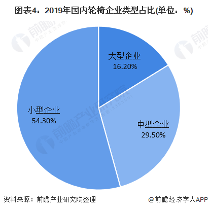 從企業(yè)類(lèi)型角度看,我國(guó)國(guó)內(nèi)輪椅行業(yè)以小型企業(yè)為主,大型醫(yī)療器械企業(yè)輪椅業(yè)務(wù)占比較小,多為附帶業(yè)務(wù),從輪椅企業(yè)來(lái)看,截止2019年,我國(guó)輪椅行業(yè)大型企業(yè)占比16.2%,中型企業(yè)占比29.5%,小型企業(yè)占比54.3%。