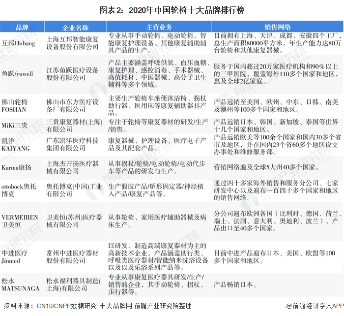據(jù)統(tǒng)計(jì),目前國(guó)內(nèi)市占率最高的是互邦、魚(yú)躍、佛山輪椅、三貴、凱洋、康揚(yáng)、奧托博克、衛(wèi)美恒、中進(jìn)和松永等輪椅品牌。(2020年10月,CN10/CNPP數(shù)據(jù)研究、十大品牌網(wǎng)聯(lián)合推出)