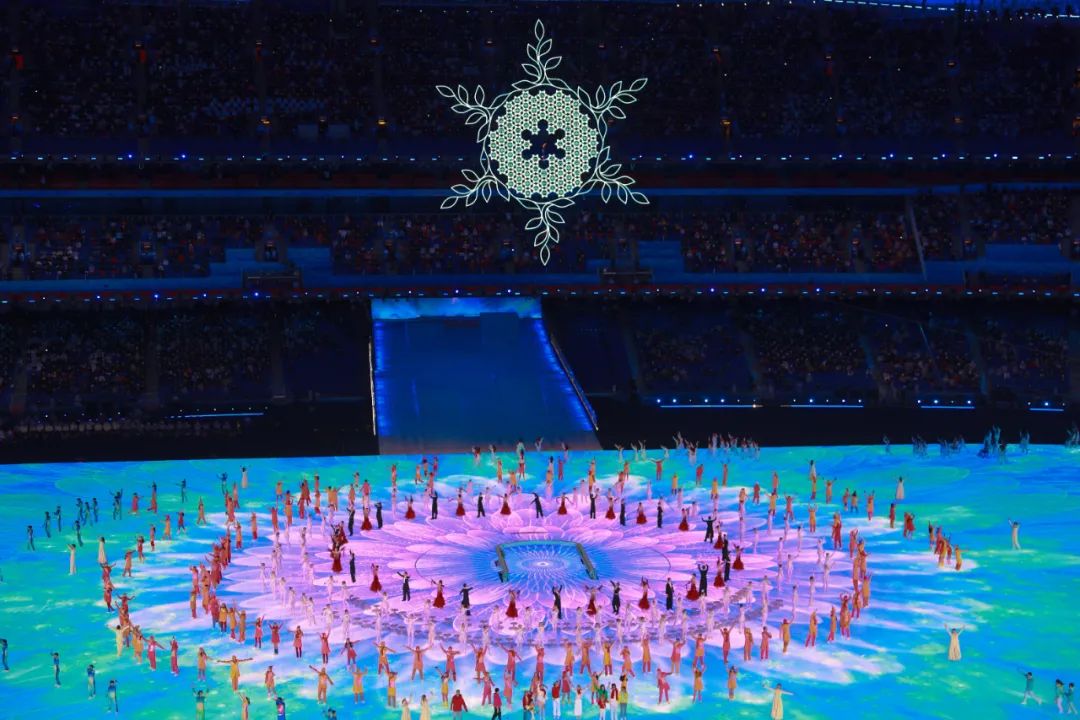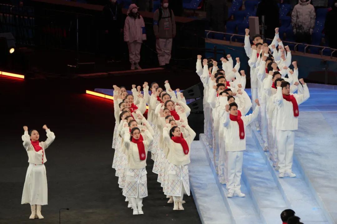 本次冬殘奧會開幕式上唯一一個正式的文藝表演環(huán)節(jié)是《冬殘奧圓舞曲》,這首歌在一年多前就確定下來,是冬奧會和冬殘奧會開閉幕式中,最早確定且一直未變的歌曲。中國殘疾人藝術(shù)團(tuán)的聽障演員身穿潔白的舞裙,推著晶瑩如冰一般的椅子。13朵美麗的“雪花”環(huán)繞著她們,“雪花”是13位手語老師,代表13屆冬殘奧會。她們用手語為聽障舞者奏響生命的節(jié)拍。冬奧會的雪花火炬臺再次從舞者中央、從地面緩緩展開,向世界發(fā)出冰雪之約。