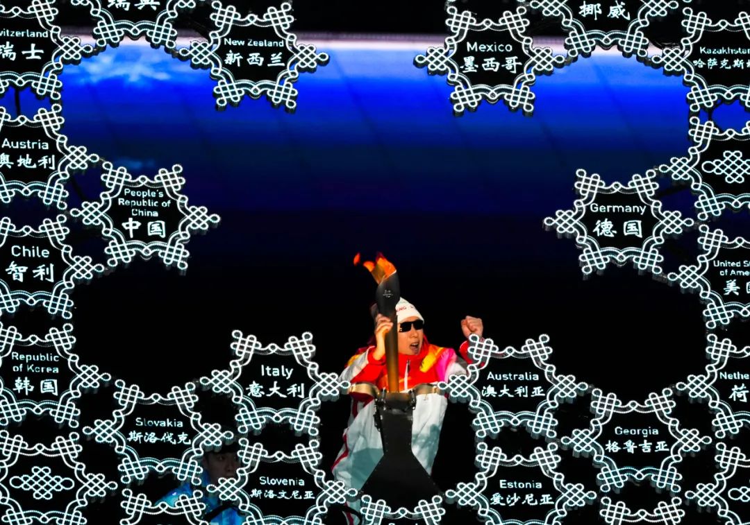 還是那片雪花,還是那團(tuán)微火?;鹁?zhèn)鬟f到最后一棒,退役盲人運動員李端拿起了主火炬。李端曾是CBA主力運動員,殘奧會三級跳遠(yuǎn)項目四塊金牌得主。在歷屆殘奧會和冬殘奧會開幕式中,還沒有盲人點火的先例。當(dāng)盲人第一次成為殘奧會歷史上最后一棒火炬手,用雙手觸摸火炬臺的方式點燃圣火,如體育點亮人生的暗夜,如拼搏點燃生命的燭火。