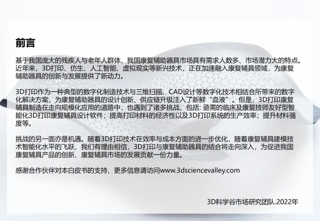 3D科學(xué)谷第三版《3D打印與康復(fù)輔助器具白皮書》,從康復(fù)醫(yī)療市場、多樣化的3D打印康復(fù)應(yīng)用、康復(fù)輔具設(shè)計(jì)及行業(yè)標(biāo)準(zhǔn)三大版塊,剖析康復(fù)輔具市場前景、挑戰(zhàn),3D打印技術(shù)與康復(fù)輔具制造的應(yīng)用結(jié)合點(diǎn),以及推動(dòng)3D打印康復(fù)輔具應(yīng)用走向深入的積極因素。