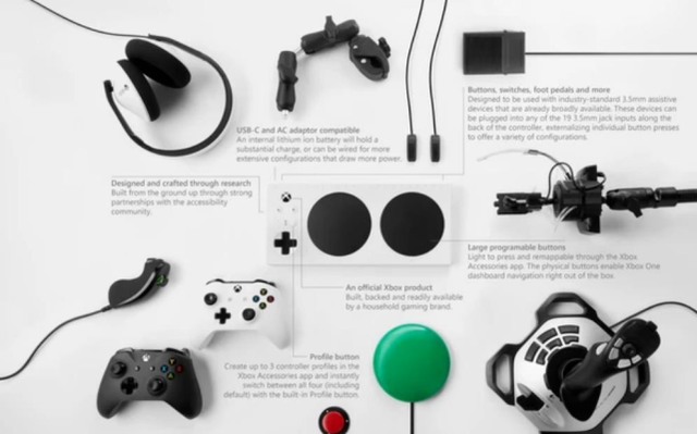 “為了一切玩家”(Gaming for Everyone)是2015年微軟所提出的口號(hào),在編程馬拉松大會(huì)上,幾名微軟員工設(shè)計(jì)了一套為殘疾人制作的無障礙游戲控制項(xiàng)目,而這很快打動(dòng)了微軟的高層。一段時(shí)間后,他們正式推出了Xbox Adaptive Controller無障礙控制器,這能讓那些無法正常使用鍵盤或手柄的玩家也能通過自己的改造,利用自定義按鍵進(jìn)行游戲。