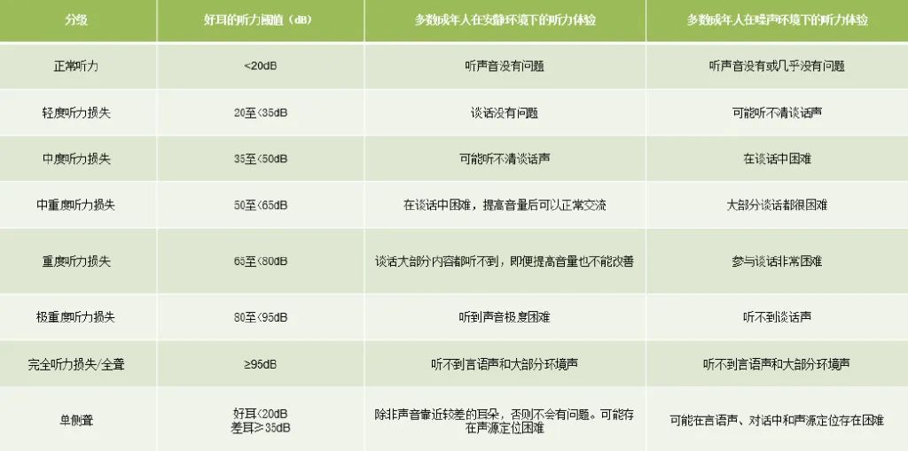 WHO2021年發(fā)布聽力損失分級表標準