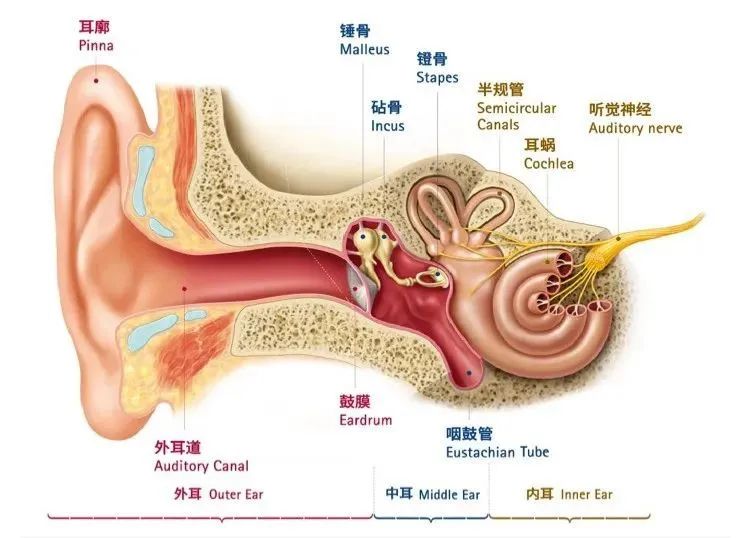 耳道:鼓膜外的通道,將聲音輸送到鼓膜。