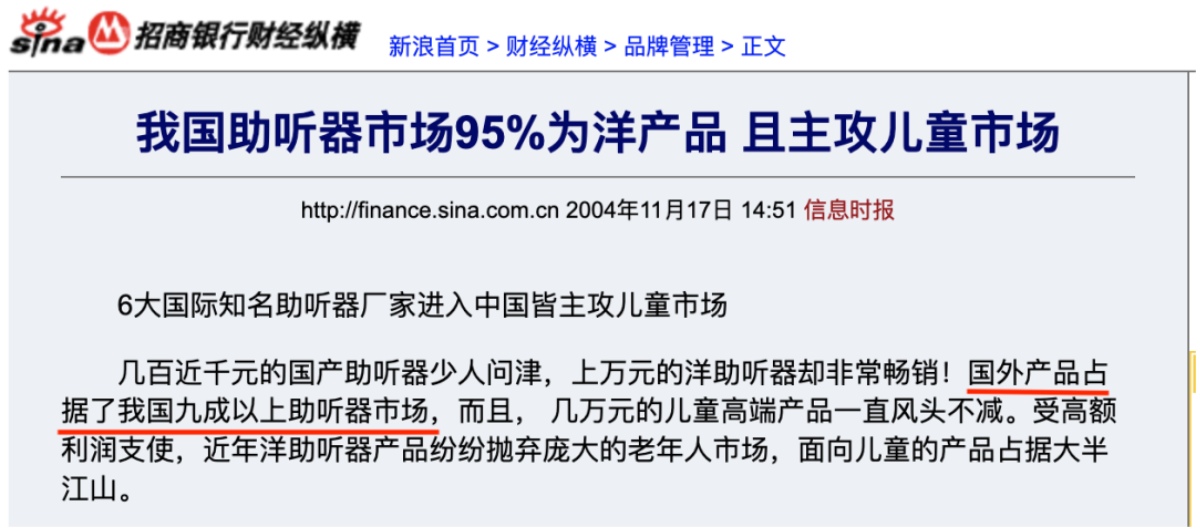 歐洲證券行業(yè)專業(yè)分析機構(gòu)卡內(nèi)基證券所分析,2004年中國僅有1000多家助聽器驗配店和服務(wù)機構(gòu),市場上的優(yōu)質(zhì)助聽器僅為20萬臺,且9成以上為國外產(chǎn)品。