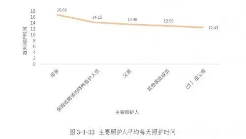 特殊家庭要付出的成本遠不止金錢。數(shù)據(jù)顯示,當母親作為主要照護人時,平均每天照護16.68小時,當保姆作為主要照護人時,平均每天照護14.15小時,當父親作為主要照護人時,平均每天照護13.46小時,而當其他家庭成員和(外)祖父母作為主要照護人時,平均每天照護時間分別為12.96小時和12.43小時。可見,母親作為主要照護人時,每天付出的時間是最長的。
