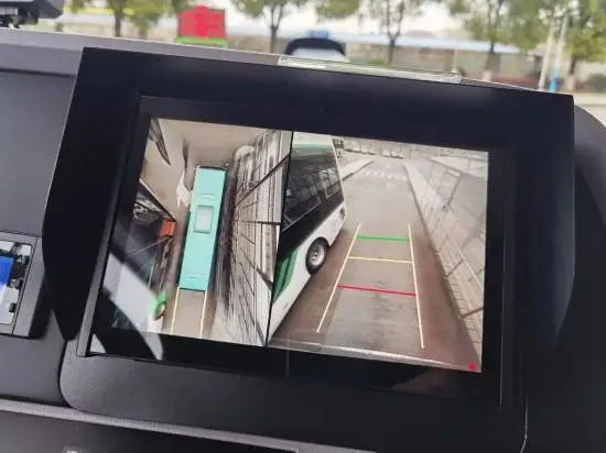 在盈港客運(yùn)站,一輛輛嶄新的“白金剛”純電動(dòng)新能源公交車??吭谡九_(tái),黑白相間的車身,體格魁梧的外形,看上去派頭十足。新公交車不僅外觀酷勁十足,還有不少人性化、重安全的新功能、新設(shè)施。車廂內(nèi)共有33個(gè)乘客座位,車門設(shè)置一級(jí)踏板,使乘客上下車、就坐更加方便安全。后車門還配置有無(wú)障礙斜坡踏板,一旦有腿腳不便或者使用輪椅的老年乘客出現(xiàn),駕駛員可以立刻啟動(dòng)該功能。車輛智能輔助駕駛功能是“白金剛”公交車的一大亮點(diǎn),360全景環(huán)視預(yù)警輔助系統(tǒng)可以幫助駕駛員更加清晰地觀察周圍情況,有利于駕駛員及時(shí)作出準(zhǔn)確判斷。駕駛員陸志忠告訴記者:“這兩個(gè)顯示鏡很方便,特別是右轉(zhuǎn)彎的時(shí)候,每個(gè)死角都能看到,消除了安全隱患,一目了然,看上去很清楚。”