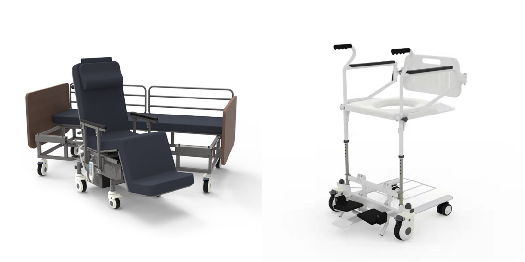 該產(chǎn)品可協(xié)助失能人群在椅子床、沙發(fā)間變換位置,同時擁有輪椅、坐便、坐浴功能。適用與長期臥床、下身癱瘓、重度失能人群。