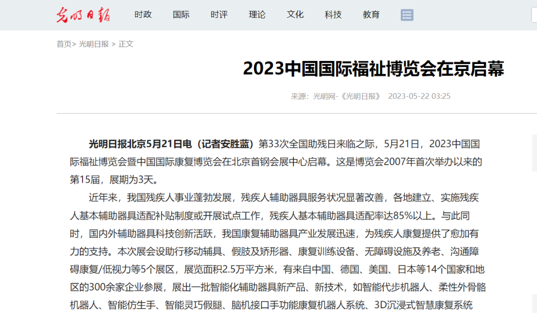 第33次全國(guó)助殘日來(lái)臨之際,5月21日,2023中國(guó)國(guó)際福祉博覽會(huì)暨中國(guó)國(guó)際康復(fù)博覽會(huì)在北京首鋼會(huì)展中心啟幕。這是博覽會(huì)2007年首次舉辦以來(lái)的第15屆,展期為3天。