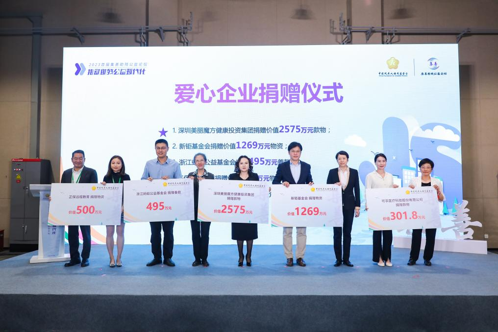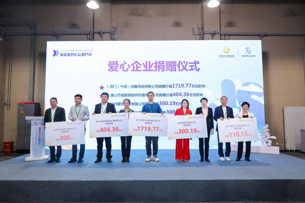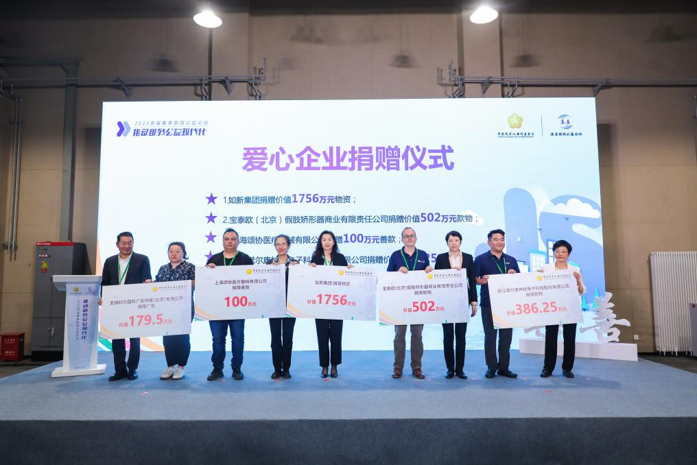 (上三圖為可孚醫(yī)療科技股份有限公司、新矩基金會、深圳美麗魔方健康投資集團、浙江螞蟻公益基金會、正保遠程教育、寶泰歐(北京)假肢矯形器商業(yè)有限責任公司、上海頌協(xié)醫(yī)療器械有限公司、如新集團、浙江諾爾康神經(jīng)電子科技股份有限公司、亞瑞科爾國際廣告?zhèn)髅剑ū本┯邢薰尽⒋笸酰贤ǎ┥钣闷酚邢薰?、杭州愛聽科技有限公司、明門(中國)幼童用品有限公司、唐山市福愛假肢矯形器有限公司、北京創(chuàng)潔衛(wèi)康科技有限公司等15家愛心企業(yè)和機構向中國殘疾人福利基金會捐贈了總價值1.07億元的款物)