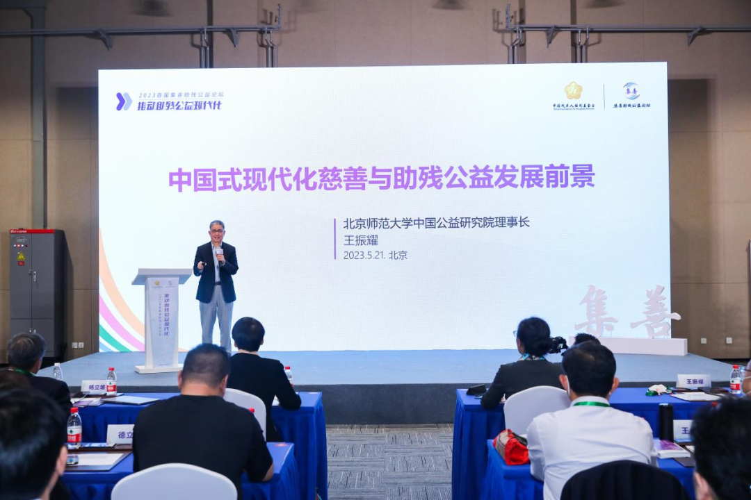 主旨演講環(huán)節(jié),北京師范大學中國公益研究院理事長王振耀以《中國式現(xiàn)代化慈善與助殘公益發(fā)展前景》為題進行主旨演講,他指出,中國的公益事業(yè)正處于快速發(fā)展的階段,推動和實現(xiàn)助殘公益現(xiàn)代化需要政府、社會組織、企業(yè)等多方的共同努力。只有通過各方面的支持和合作,才能夠實現(xiàn)助殘公益事業(yè)的現(xiàn)代化和可持續(xù)發(fā)展。