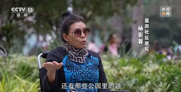 益田社區(qū)居民 楊彩蓉:所有的街道小區(qū)里面的公路,還有那些公園里的路的坡道都做得很好,都能夠做到零高差,讓我們不需要人家?guī)椭那闆r下,能夠自由通暢地進行游玩,這一點是感受挺不錯的,不會造成我出來要麻煩到別人,我不會有這樣的感覺,我就會覺得很自豪。
