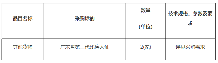 廣東省第三代殘疾人證供應(yīng)商公開(kāi)選取項(xiàng)目招標(biāo)公告