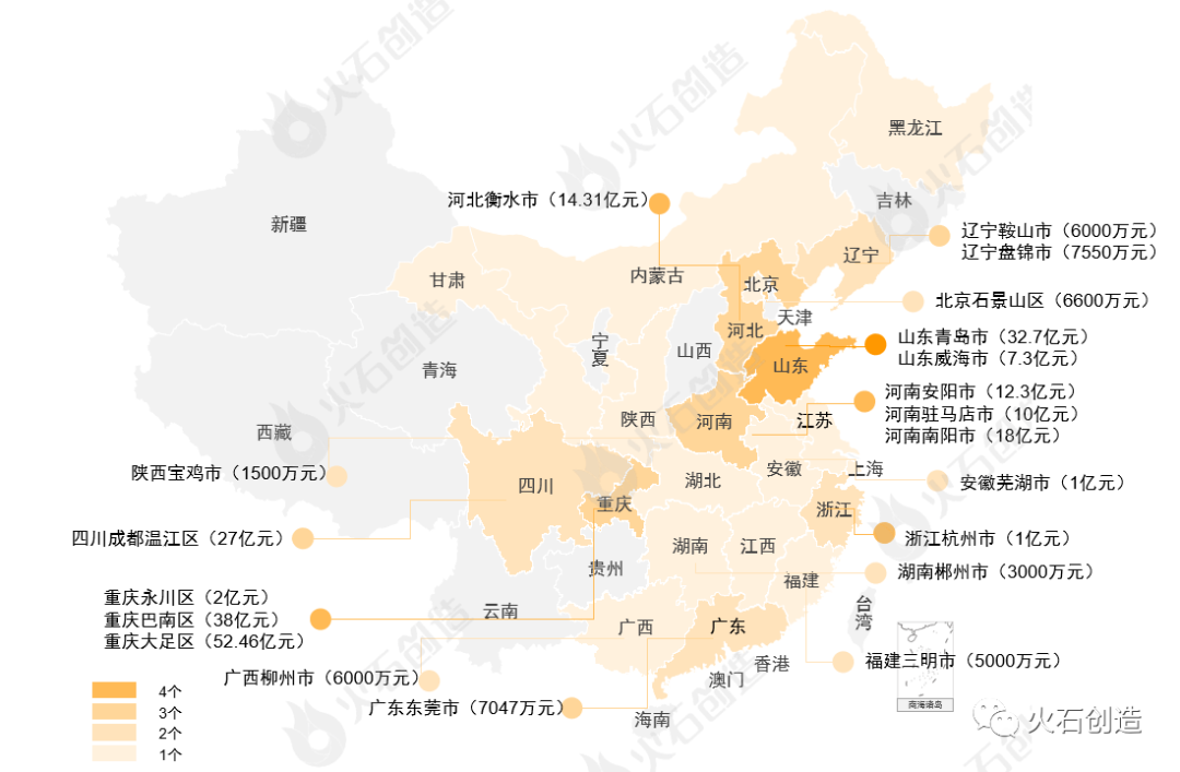 2017年9月,國家組織開展康復(fù)輔助器具產(chǎn)業(yè)綜合創(chuàng)新試點(diǎn),深圳市、嘉興市等12個(gè)地區(qū)成為首批試點(diǎn)區(qū)域,北京石景山區(qū)、上海青浦區(qū)、浙江杭州市等22個(gè)地區(qū)列入第二批試點(diǎn)區(qū)域,并提交國家綜合創(chuàng)新試點(diǎn)承諾書,將在2021-2023年持續(xù)加大資金投入以支持康復(fù)輔助器具產(chǎn)業(yè)發(fā)展。其中,河北省衡水市、浙江省杭州市、山東省青島市、河南省南陽市、重慶市大足區(qū)等11個(gè)地區(qū)三年總計(jì)資金投入均超過億元,其中重慶市大足區(qū)累計(jì)投入高達(dá)52.46億元。