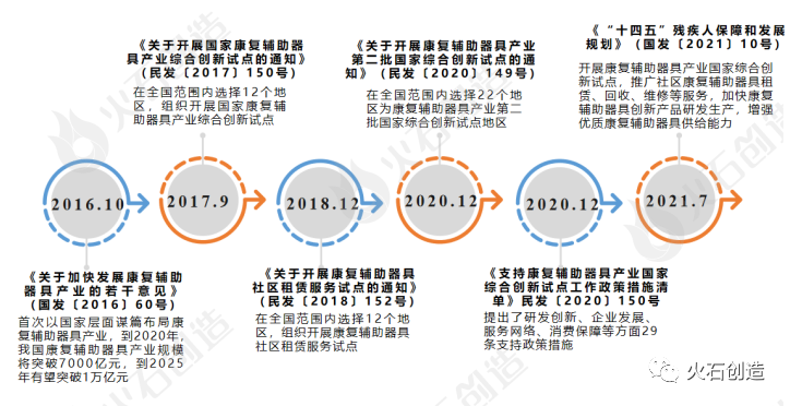 2016年10月,國務(wù)院發(fā)布《關(guān)于加快發(fā)展康復(fù)輔助器具產(chǎn)業(yè)的若干意見》(國發(fā)〔2016〕60號(hào)),首次以國家層面謀篇布局康復(fù)輔助器具產(chǎn)業(yè),提出增強(qiáng)自主創(chuàng)新能力、促進(jìn)產(chǎn)業(yè)優(yōu)化升級(jí)、擴(kuò)大市場有效供給、營造良好市場環(huán)境四項(xiàng)主要任務(wù),統(tǒng)籌推進(jìn)康復(fù)輔助器具產(chǎn)業(yè)發(fā)展。