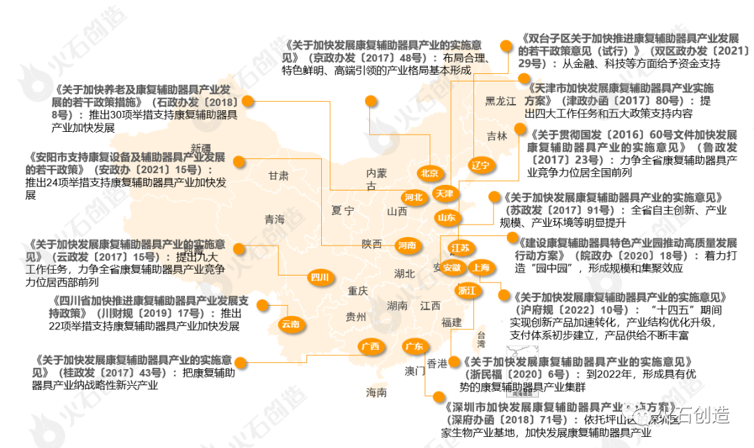 二是上級(jí)政府充分賦能。在貫徹落實(shí)《國務(wù)院關(guān)于加快發(fā)展康復(fù)輔助器具產(chǎn)業(yè)的若干意見》的基礎(chǔ)上,上海、成都、北京等地相繼出臺(tái)市級(jí)層面的產(chǎn)業(yè)規(guī)劃和具體實(shí)施措施,從頂層設(shè)計(jì)方面為產(chǎn)業(yè)賦能,在稅收、金融服務(wù)、財(cái)政資金引導(dǎo)等方面給予企業(yè)政策支持和保障。