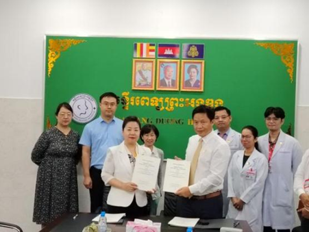 圖為與老撾、柬埔寨殘疾人協(xié)會負(fù)責(zé)人簽訂合作協(xié)議