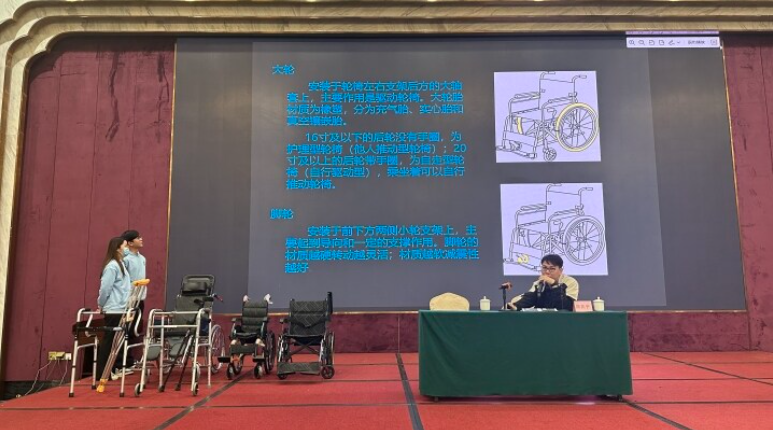授課專(zhuān)家講解輪椅等輔具的特點(diǎn)。