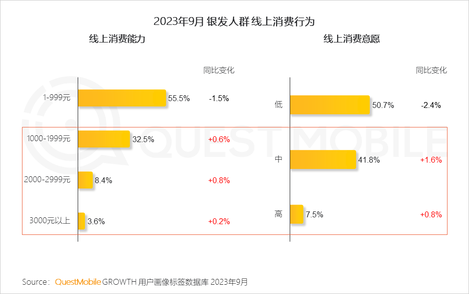 3、銀發(fā)經(jīng)濟(jì)市場潛力凸顯,較去年相比,源于向高線級城市遷移,銀發(fā)群體表現(xiàn)出的線上消費(fèi)能力、消費(fèi)意愿均有明顯提升。