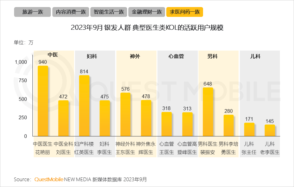 4、除了對醫(yī)療服務(wù)應(yīng)用的使用,銀發(fā)人群也會(huì)選擇通過內(nèi)容平臺(tái)的KOL來獲取廣泛的專科醫(yī)療保健內(nèi)容。